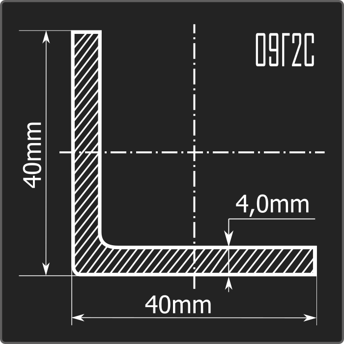 Угол стальной холоднокатаный гнутый равнополочный 40*40мм, толщиной 4,0мм и длиной 6м. Материал - низколегированная сталь. Соответствует требованиям ГОСТ 19281-2014.