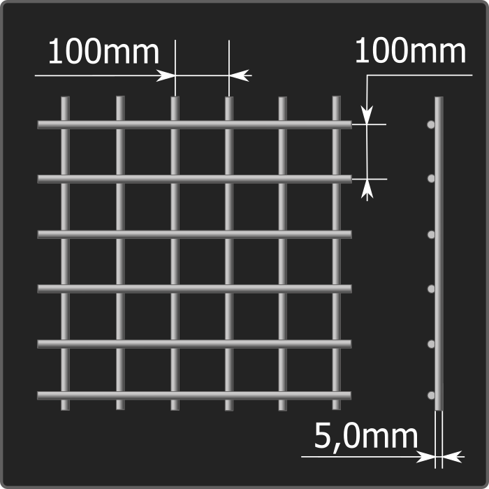 Сетка сварная с размером стороны ячейки 100*100мм из термический необработанной проволоки диаметром 5,0мм шириной карты 2,0м и длиной 3,0м. Соответствует требованиям ТУ 25.93.13-001-03876796-2019.