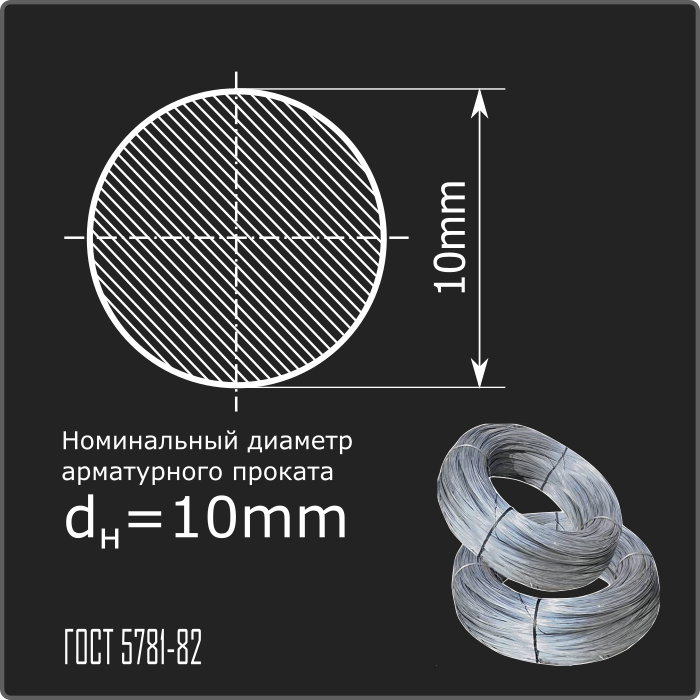 Арматурный прокат горячекатаный в мотках гладкого профиля номинального диаметра dн 10,0мм класса А240. Соответствует требованиям ГОСТ 5781-82.