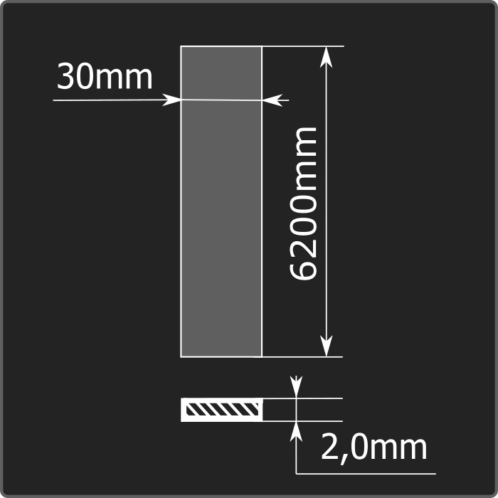 Полоса стальная горячекатаная толщиной 2,0мм, шириной 30мм и длиной 6,2м. Материал - углеродистая сталь. Соответствует требованиям ГОСТ 103-2006.