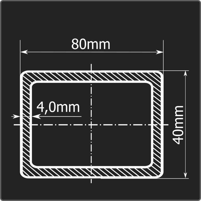 Труба профильная стальная прямоугольного сечения 80*40мм, длиной 12м и толщиной 4,0мм. Материал - углеродистая сталь. Соответствует требованиям ГОСТ 13663-86. Стандартный пакет: вес - 6,302тн., количество - 77шт.